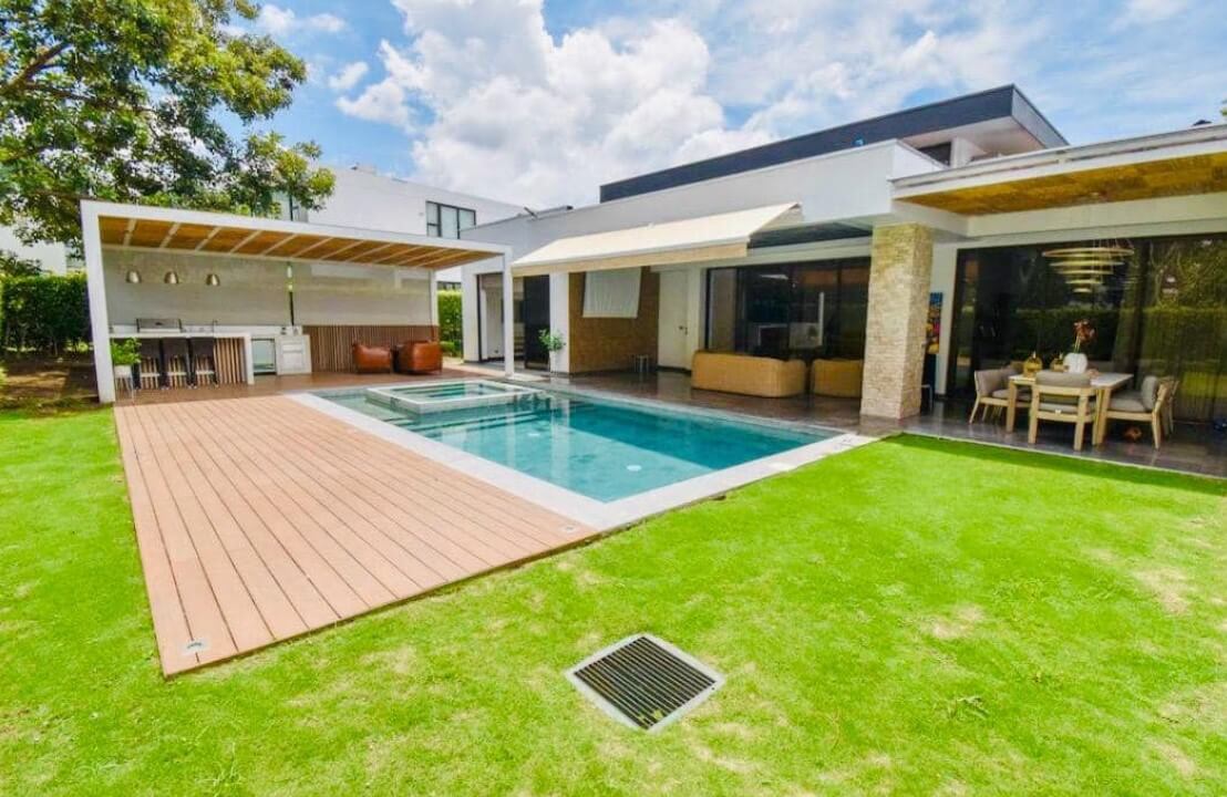 La casa cuenta con paredes muy altas, y áreas muy iluminadas en donde destaca una espaciosa sala la cual posee aire acondicionado central para mantener la comodidad en toda la casa, el comedor tiene vista hacia el área de piscina y se encuentra ubicado al lado de la cocina, un área de ensueño; la cocina viene equipada con línea blanca empotrada, isla y zona de desayunador con sobres en cuarzo, una alacena bien pensada para almacenamiento adicional.